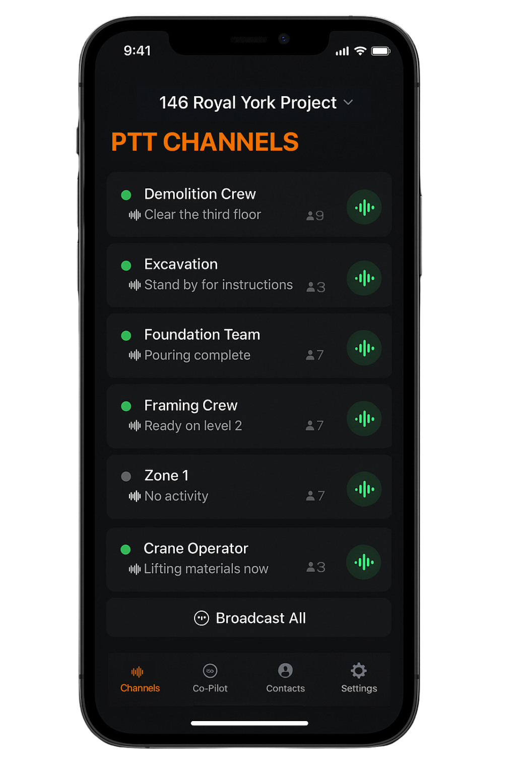 App for iOS, Android, PC, and Mac | Send live voice messages 1:1 and 1:many | Send live voice, texts, photos, and more | Unlimited Number of channels | Message Vault | Emergency Alerts | Transcription | Customer support access | First response time | Management console | Multiple admins | Sub-admin permissions | Bulk import users and channels | Channel user-roles | User and channel tags | User templates | Shared device configuration | Control who talks to whom | Sign-in reports | Integration with MDM for sign-in | Single sign-on (SSO) | Real-time location tracking | User status and battery life | Google Maps traffic | Historical breadcrumb tracking | Dispatch Hub for PC and Mac | Shared call queue | Dispatch channel analytics | Security & compliance | Private network | Encryption | Two-factor authentication | SOC 2, Type II compliance | ISO 27001 compliance | GDPR compliance | Support for HIPAA compliance